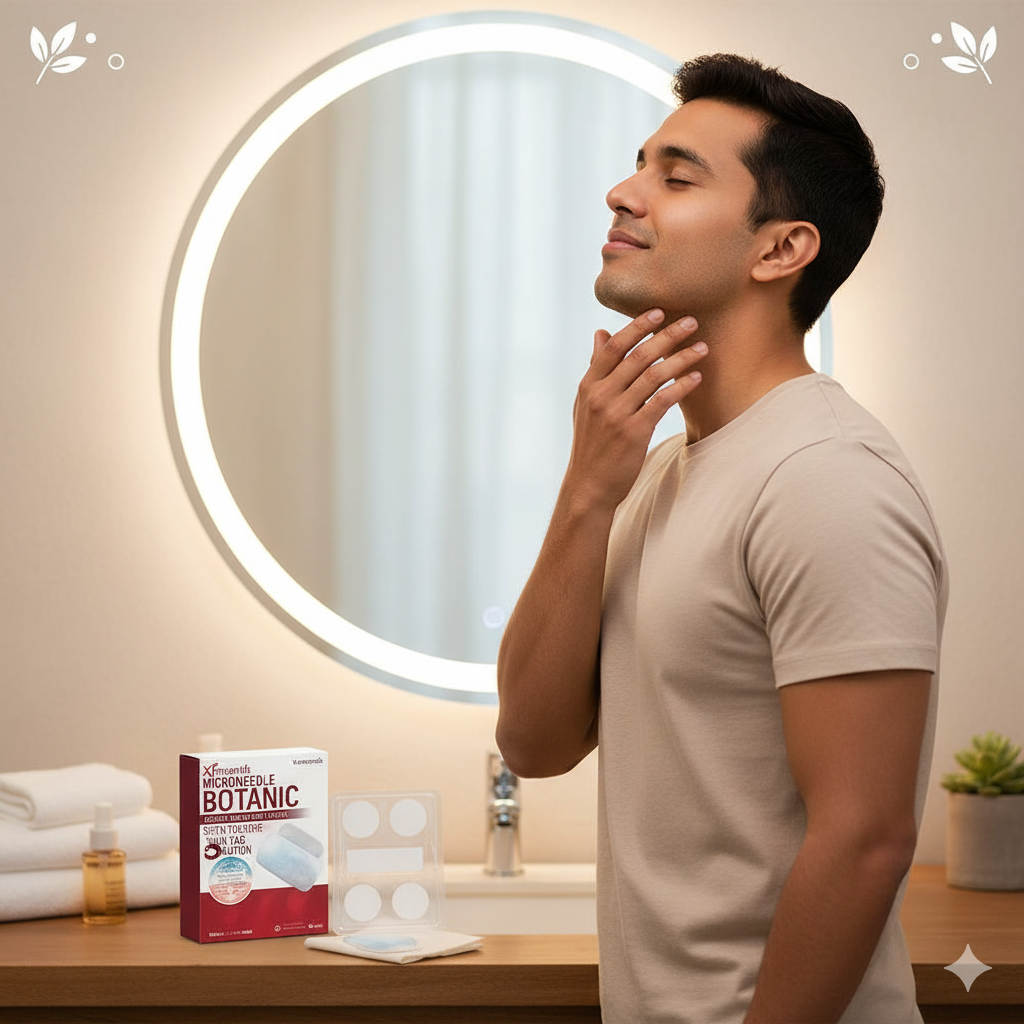 Answer 1: The adhesive bandage contains Nicotinamide as the active ingredient, which is known for its skin-soothing and brightening properties. It also includes hyaluronic acid, which helps to hydrate and moisturize the skin.